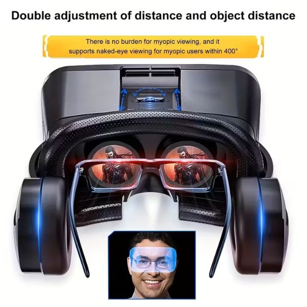 CARACTERÍSTICAS: Caja de Realidad Virtual 3D VR para iPhone, Samsung, Huawei, Xiaomi, OPPO, Vivo, Android y todos los smartphones ||-Tiene un ángulo de visión que varía de 85° a 95° (dependiendo de la aplicación en uso) ||-Gracias a las lentes de resina ABS de 42 mm, la experiencia es similar a disfrutar de una pantalla de 1000 pulgadas a 3 metros de distancia ||-Construido con policarbonato de alta calidad y equipado con bordes acolchados para una protección facial del 100% contra el uso prolongado ||-Tres puntos de anclaje los mantienen estables en la cara para evitar resbalones durante movimientos bruscos